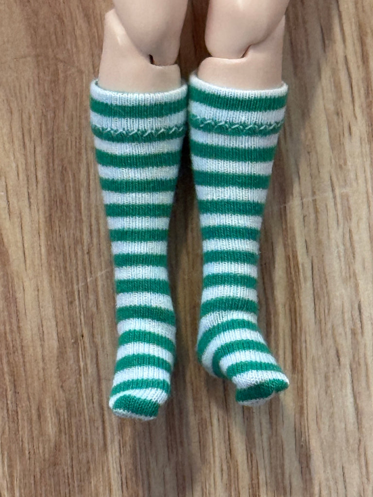 Knee length cotton lycra socks for Blythe can be scrunched down to wear with tennis shoes.  Available in solid colors on request.